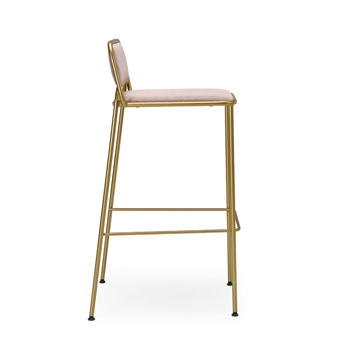 Gepolsterter stuhl und barhocker mit lackiertem oder verchromtem gestell.