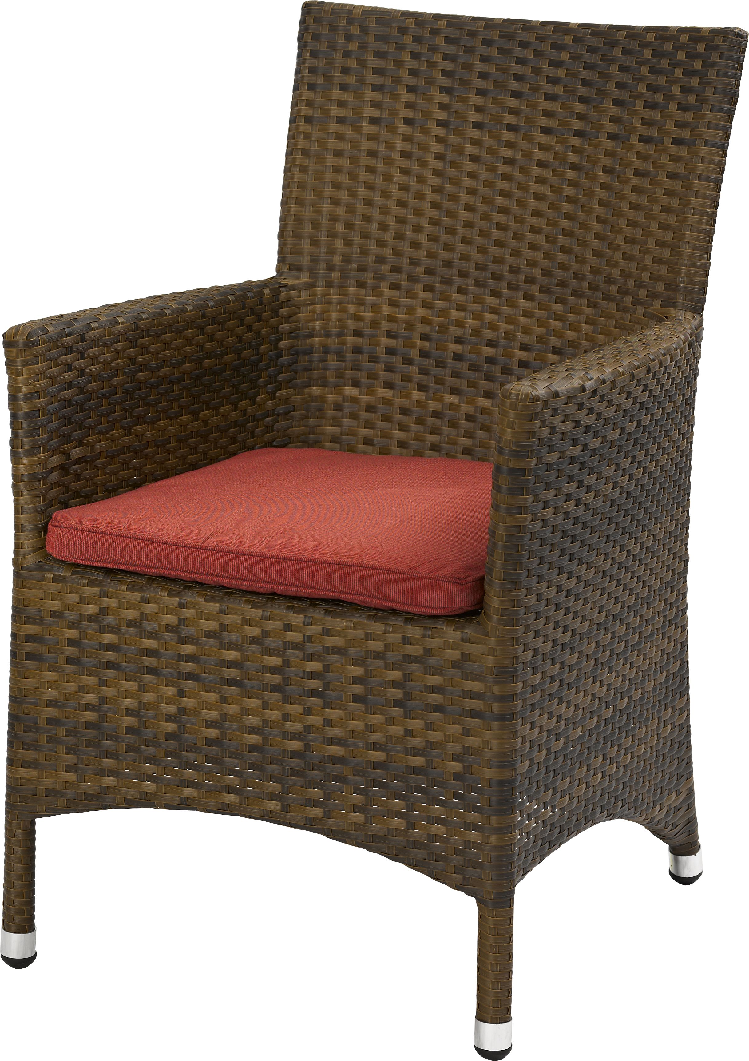Gestell: Aluminium pulverbeschichtet Geflecht: Kunststoffgeflecht, flach gewickelt in burned (braun meliert) durchgefärbt mit Farben von BASF Möglich mit Sitzkissen UV- und wetterbeständig Gewicht6,0 kg Sitzhöhe45 cm Sitzfläche43X44 cm Gesamthöhe88 cm Armlehnenhöhe64 cm WitterungsbeständigJa UV-beständigJa