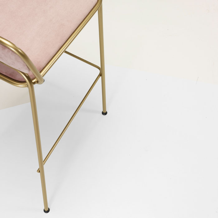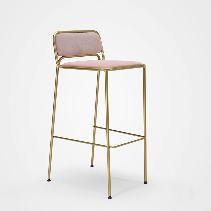 Gepolsterter stuhl und barhocker mit lackiertem oder verchromtem gestell.