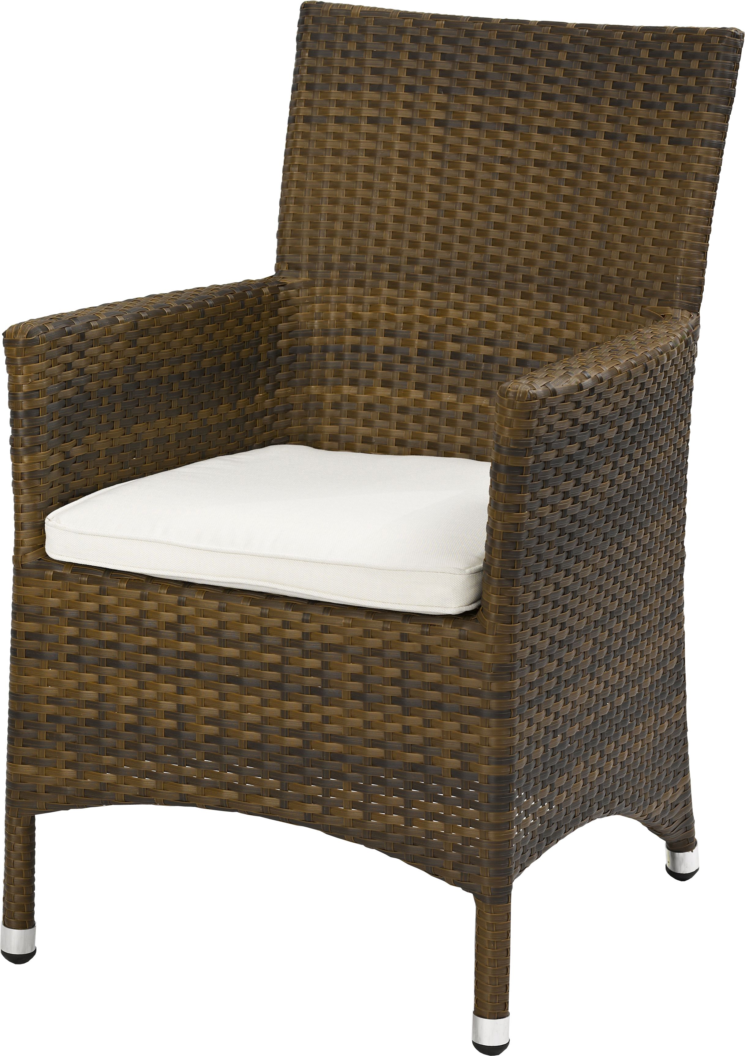 Gestell: Aluminium pulverbeschichtet Geflecht: Kunststoffgeflecht, flach gewickelt in burned (braun meliert) durchgefärbt mit Farben von BASF Möglich mit Sitzkissen UV- und wetterbeständig Gewicht6,0 kg Sitzhöhe45 cm Sitzfläche43X44 cm Gesamthöhe88 cm Armlehnenhöhe64 cm WitterungsbeständigJa UV-beständigJa